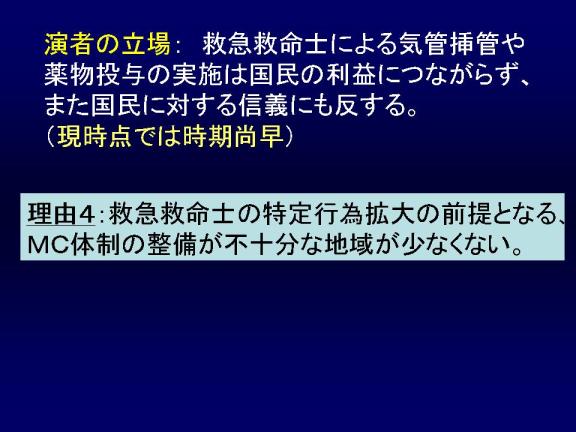 演者は救急救命士による気管挿管や薬物投与の実施は時期尚早と