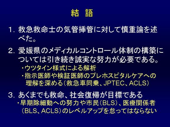 愛媛県の救急救命士の気管挿管に関しては、演者の思いとは別に、