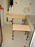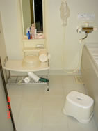 手術前に使用していた浴用椅子の高さは25cmでした。手すりは浴槽奥の壁に一カ所のみでした。 |