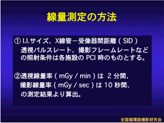 測定条件は正面撮影装置と同じです。なお、正面撮影装置と同じ配置が