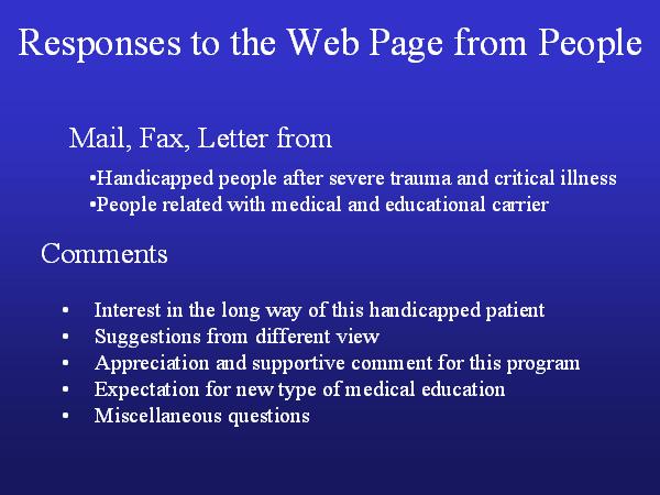 I received mails, faxes and letters from Handicapped people after severe trauma and critical illness and people related with medical and educational carrier.