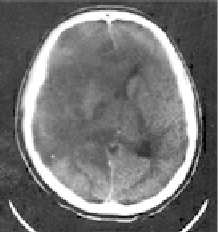写真では片方の脳が著しく腫れているために、脳内の隙間がつぶれて一方に大きく片寄っている。