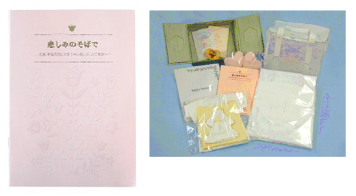 結果:この小冊子「悲しみのそばで」と「天使キット」は、都内数か所の周産期医療センターで試用してもらい、母親とその家族に質問紙により評価をしてもらいました。「悲しみのそばで」を読むことで、今自分に起こっていることが分かるなど認知面での評価が高く、一方「天使キット」は、亡くなった子どもに会うことが後押しされる・思い出の品を残すきっかけとなったなど、行動面で高い評価を得ました。 研究のその後:「天使キット」は実用新案登録を取得し、「悲しみのそばで」と共に現在アメジスト大衛より全国販売されています。 以下のURLより、商品の概要をご覧になれます。 「悲しみのそばで」 「天使キット」