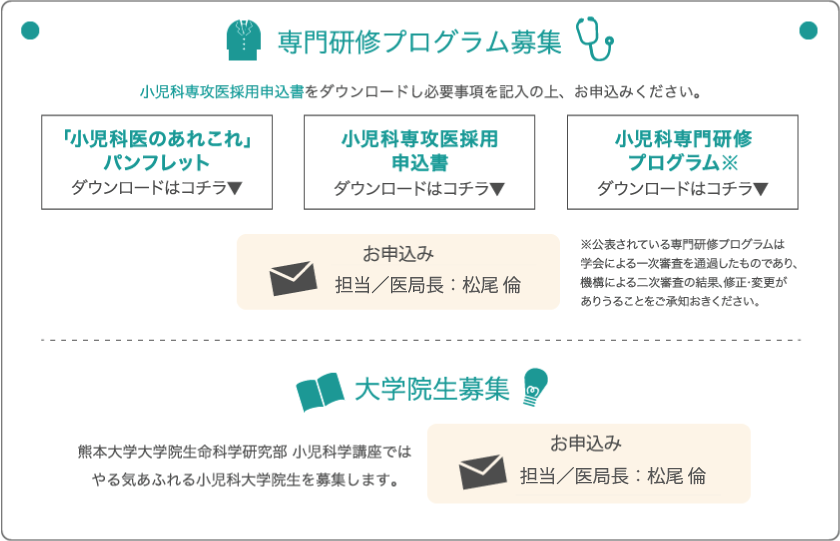 専攻医募集人数は、整備基準で定めた過去3年間の小児科専門医の育成実績より受け入れ人数は11名。指導医総数は40名。