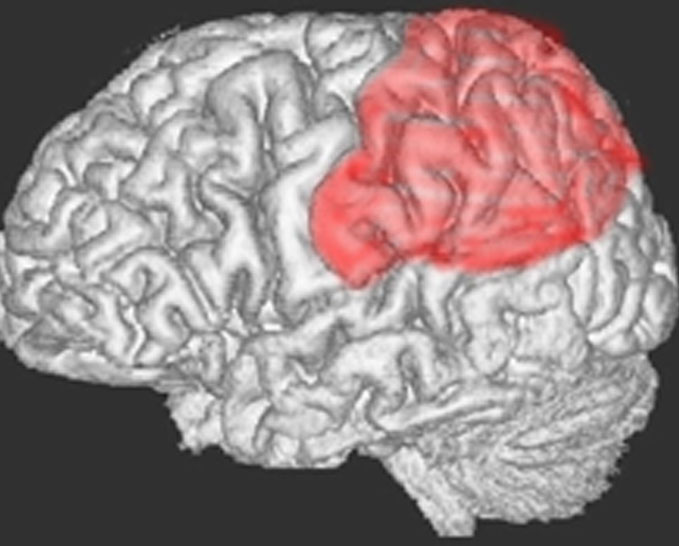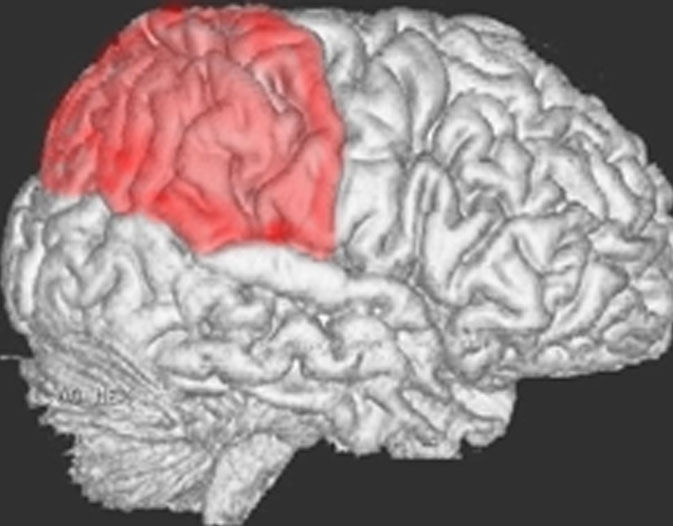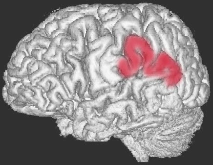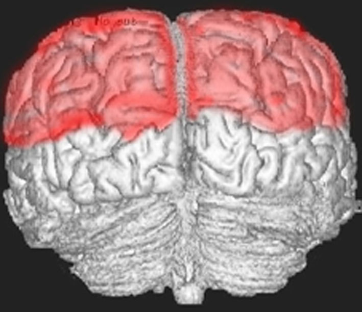 赤いところが頭頂葉。体の感覚を認識したり,いろいろな複雑な動作をしたり,計算などをする脳です。