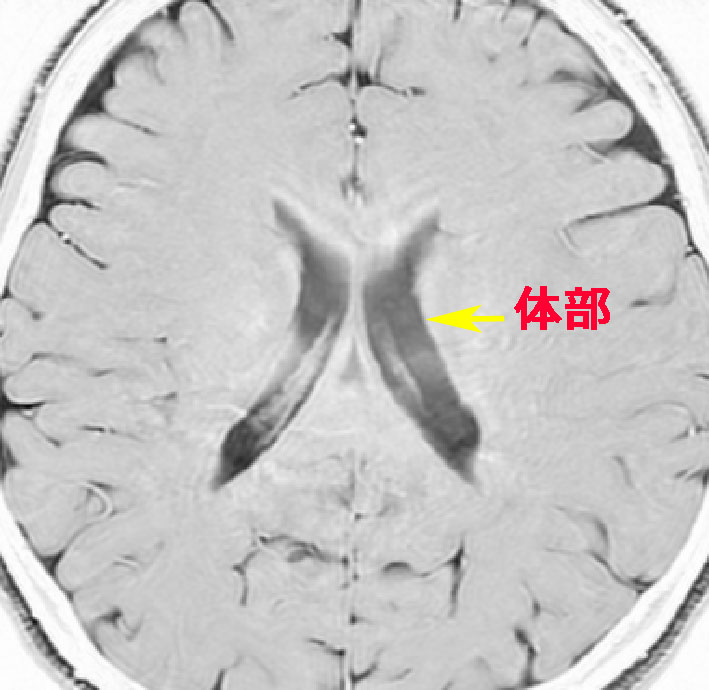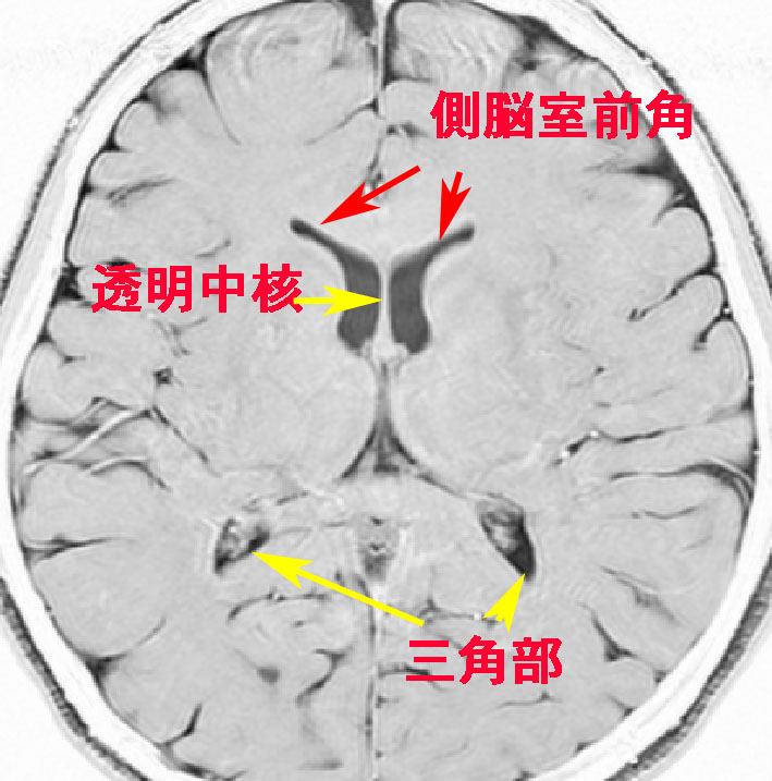 これは64歳男性の中脳水道閉塞症による閉塞性水頭症で,これでも無症状でした。