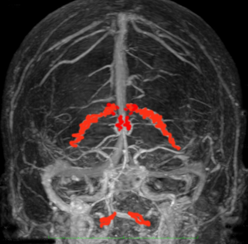 脳室内脈絡叢です(脳の静脈と一緒に描出しています)