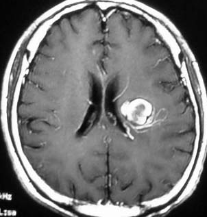 • 大きな腫瘍ではガトリニウム造影剤で増強されて白く映ることがあります