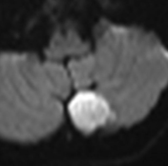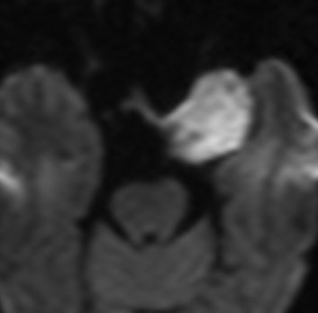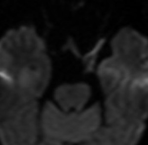 • MRI診断の最大の特徴は拡散強調画像 DWIで高信号になることです
