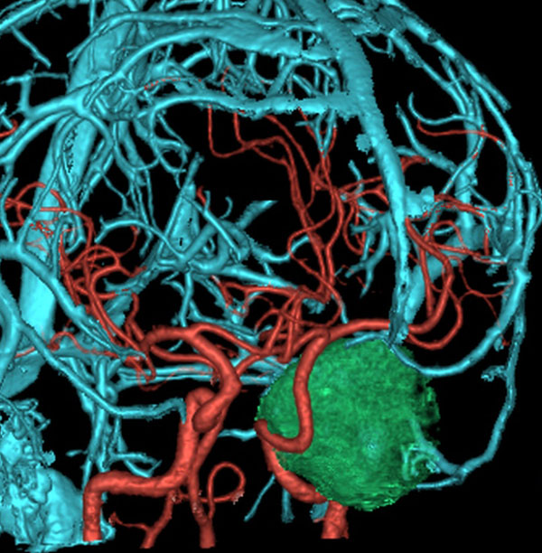 この腫瘍は硬膜外から内容物を除去できるので部分摘出が可能です。脳槽内に露出するものは部分摘出ができません。