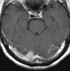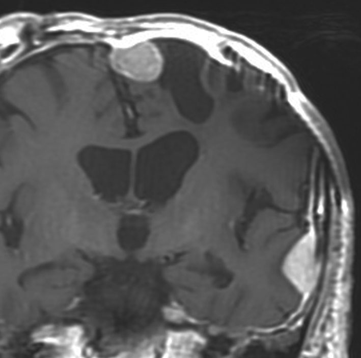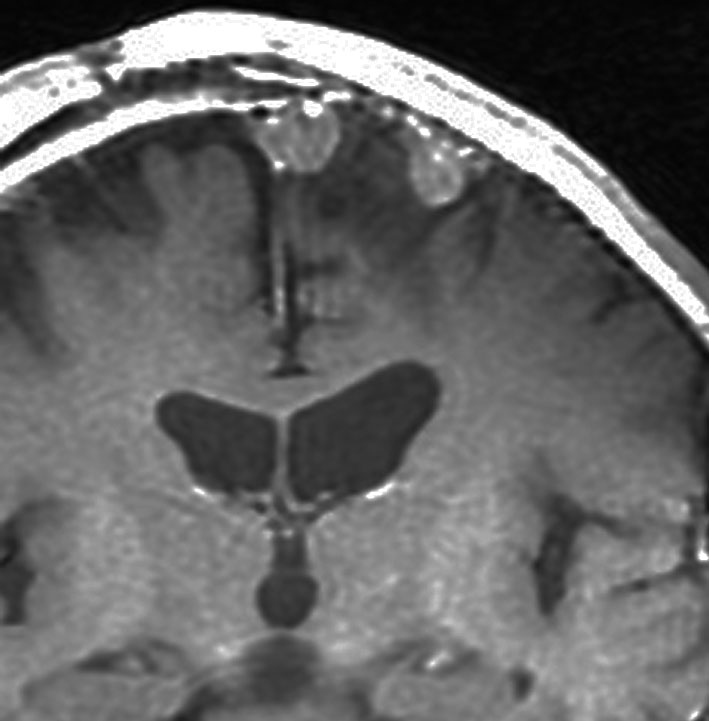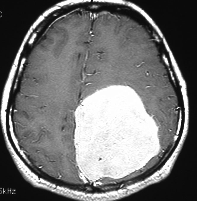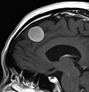 - 下のMRIは66歳の女性に脳ドックで偶然見つかった髄膜腫です.左の写真は1995年,右は2005年です。10年間で全く大きくなっていません