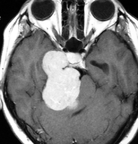 - 小脳橋角部(錐体骨縁)髄膜腫では聴力低下がでます
