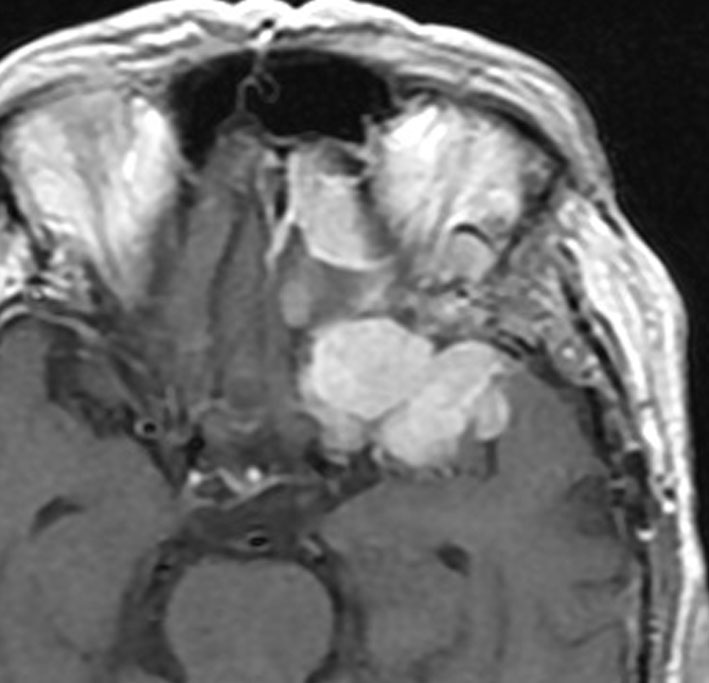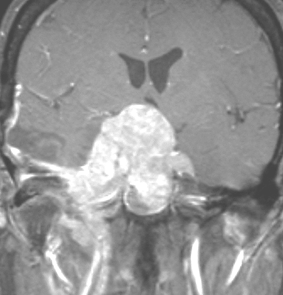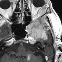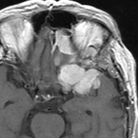 18年後には中頭蓋底から蝶形骨洞方向へと浸潤して大きな再発となりました。悪性度が高くなると頭蓋内の至る所へ転移再発します。