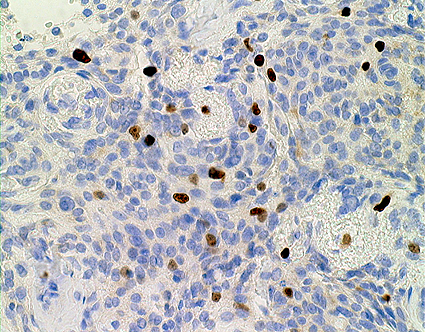 髄膜腫の悪性度は核分裂の数 mitotic index で決められます。でもHE染色で分裂像がいくつあるかは病理医の悩みの種で数え方で大きく違いがでました。またMIB-1染色は正確には分裂像を見ているものではありません。Phosphohistone H3 (PHH3) serine-10は核分裂を数えるための特異抗体です。これを用いるとグレード1、2、3の髄膜腫が正確に分類できると期待されています。
