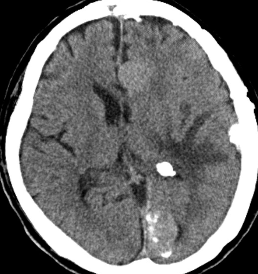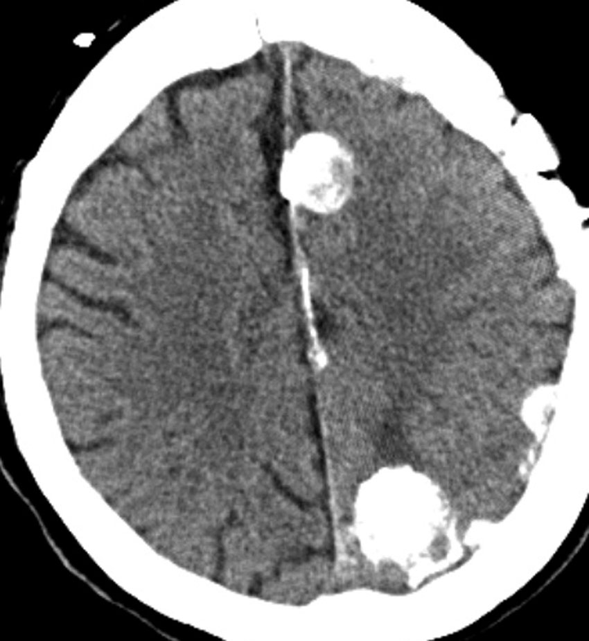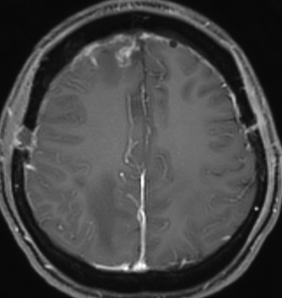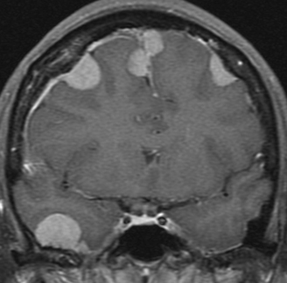 30代で下肢の局所てんかん発作で発見されました。テント上硬膜の腫瘍化です。数えれば総数で30個以上はあったでしょう。このタイプは手術で硬膜を広範囲切除(ほとんど全頭蓋冠)することで治すことができます。