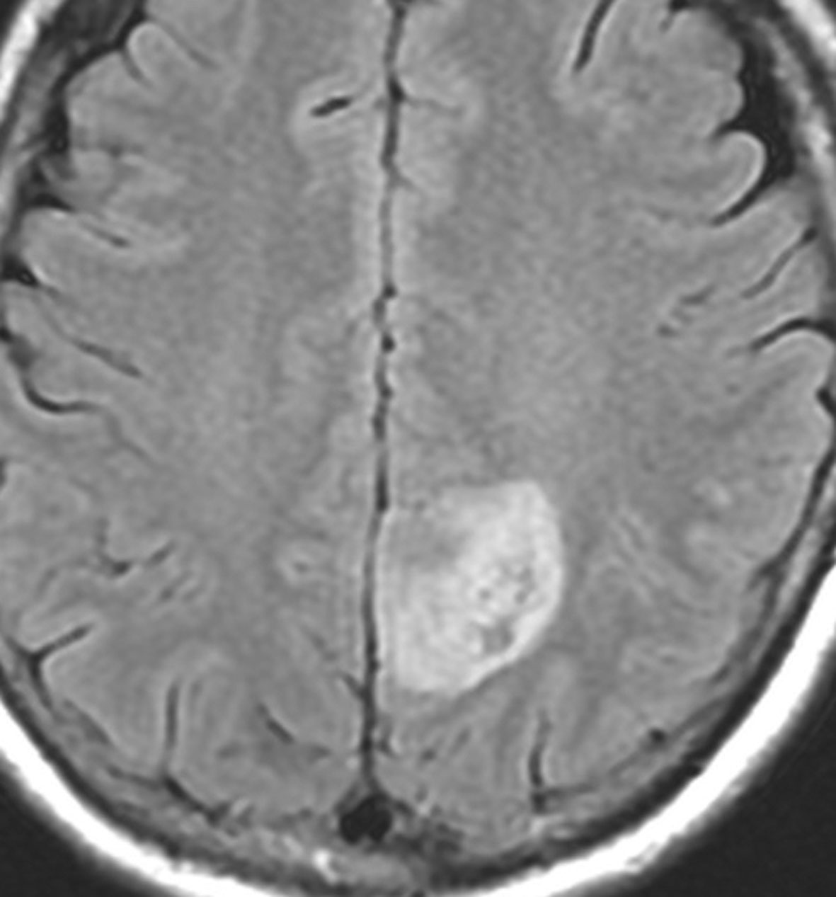 • 腫瘍境界は比較的明瞭で,広範囲のびまん性白質浸潤像をしめしません