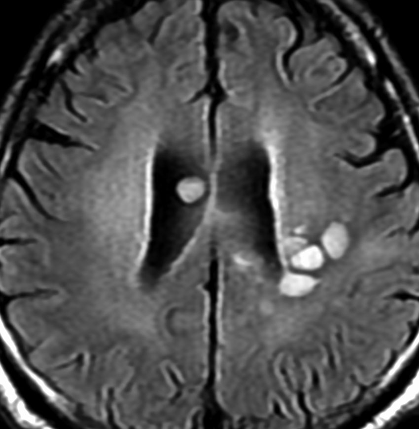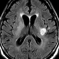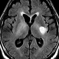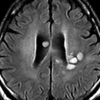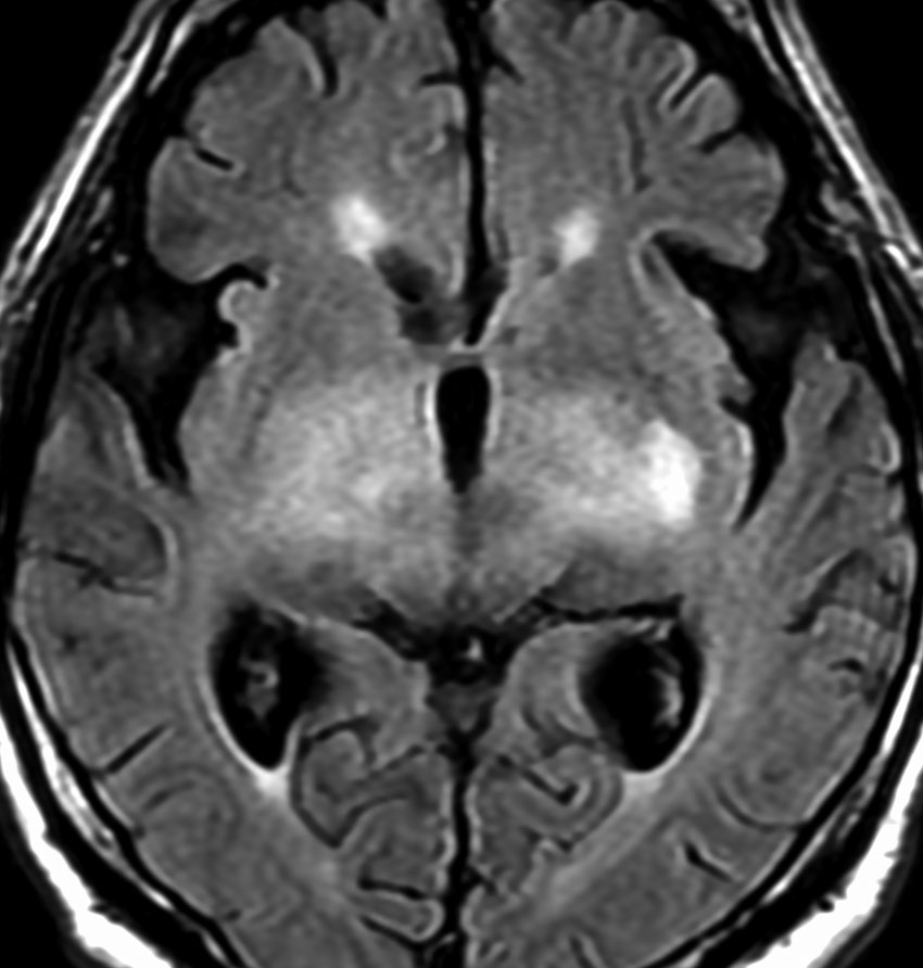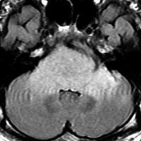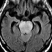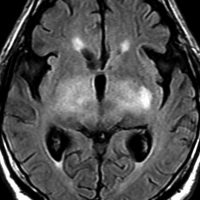 • MRIで脳のとても広い範囲(左右の大脳から脳幹部までなど)に病変がにじむように見えます