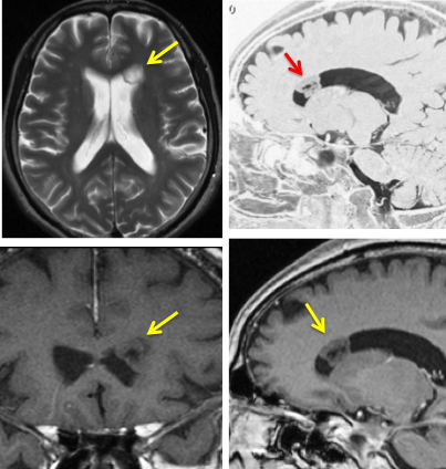 - 上衣下腫は脳にベッタリくっつくので,脳幹背部の損傷や,脳弓・前交連の損傷が生じると重篤な手術後遺症が残ります