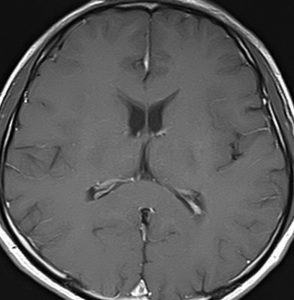 - MRIでは特に, T2強調画像,FLAIR画像,T1強調と,ガドリニウム増強の軸面,冠状断,矢状断を撮影します golden standardとされます