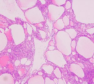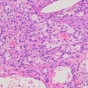 xanthomaとも表現できるほどfoamy macrophagesの浸潤の目立つ組織です。