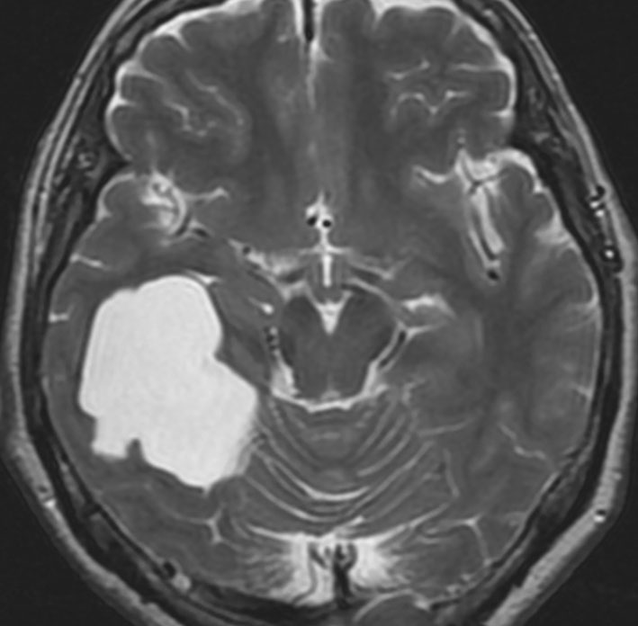もしかするとこれは,巨大な choroidal fissure cystかもしれません。