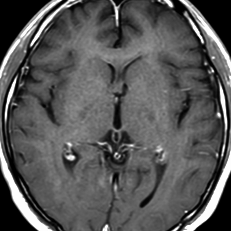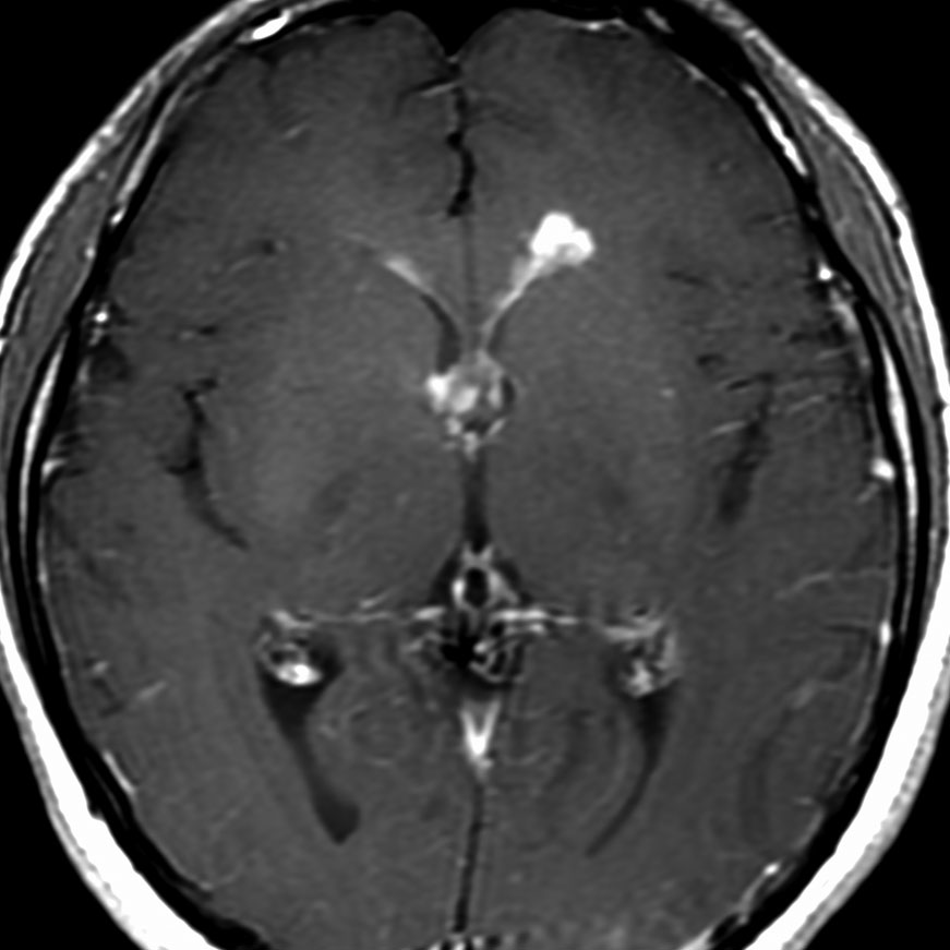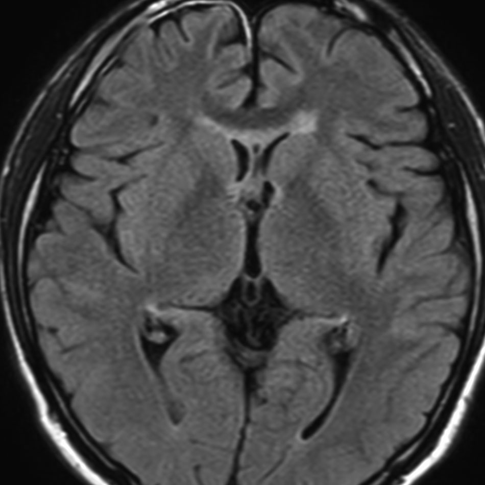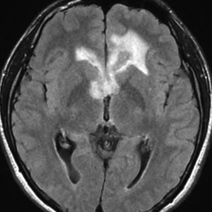 21歳男性で交通事故で偶然発見された両側前頭葉腫瘍です。