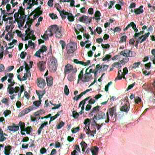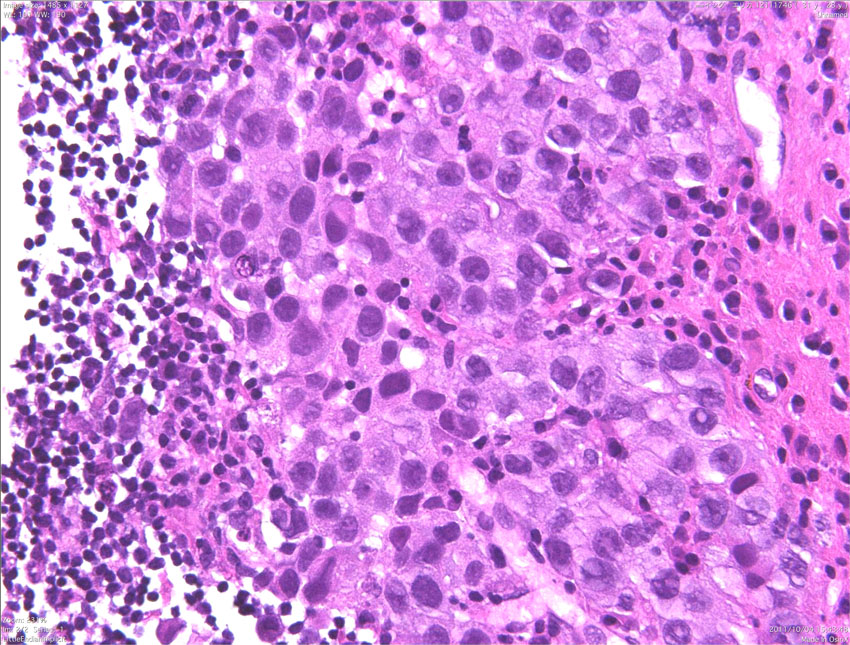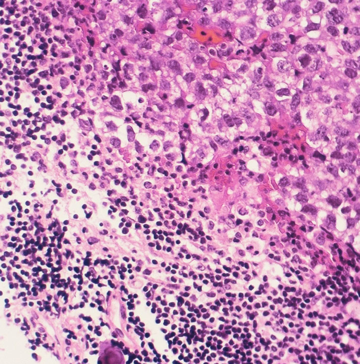 • germinomaの組織のなかにはたくさんのリンパ球が浸潤しています