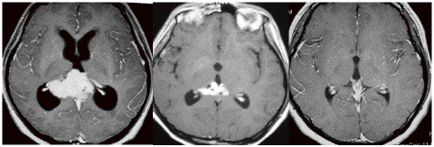 • 松果体のジャーミノーマで閉塞性水頭症を合併している時には,生検術と同時に,第3脳室開窓術をすれば改善することができます