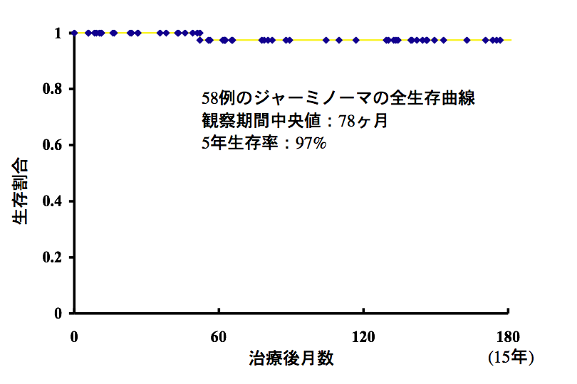 • ジャーミノーマは悪性腫瘍ですが,きちんとした治療をすれば95%以上は治ります