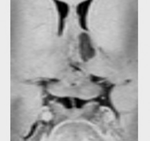 9歳6ヶ月時には,腫瘍は蝶形骨洞,斜台上部,海綿静脈洞内,トルコ鞍内(下垂体),鞍上部、視床下部,終板前交連,大脳基底核,松果体へと伸展していました。4コースのCDDPをベースとした化学療法がなされ,25.2グレイ/14分割の全脳照射 whole brainを行ないました。以後,7年間再発はありません。この子の腫瘍の発見が早ければ認知機能をもう少し良い状態で保てたのではないかと考えています。