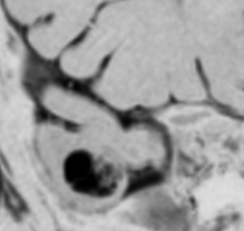 - 脳質壁に向かって柄(茎 stalk)のような病変が続く stalk-like extension のが特徴とされていますが,それが見られないものも多いですし,皮質異形成でもこの所見を持つものがあります