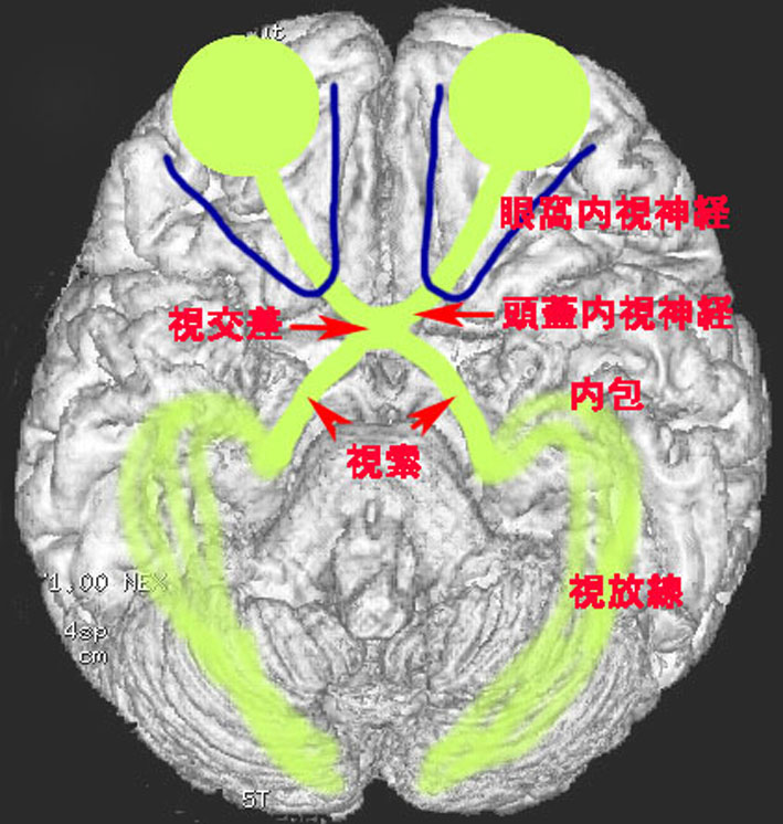 - そこからは内包後脚,視放線を伝わって,後頭葉まで行きます