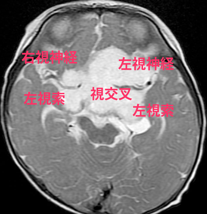 大きくなると画像診断が難しく,視交叉も侵されているようにみえますが,視野検査が診断を補助しますから,幼児でもがんばって視野検査します