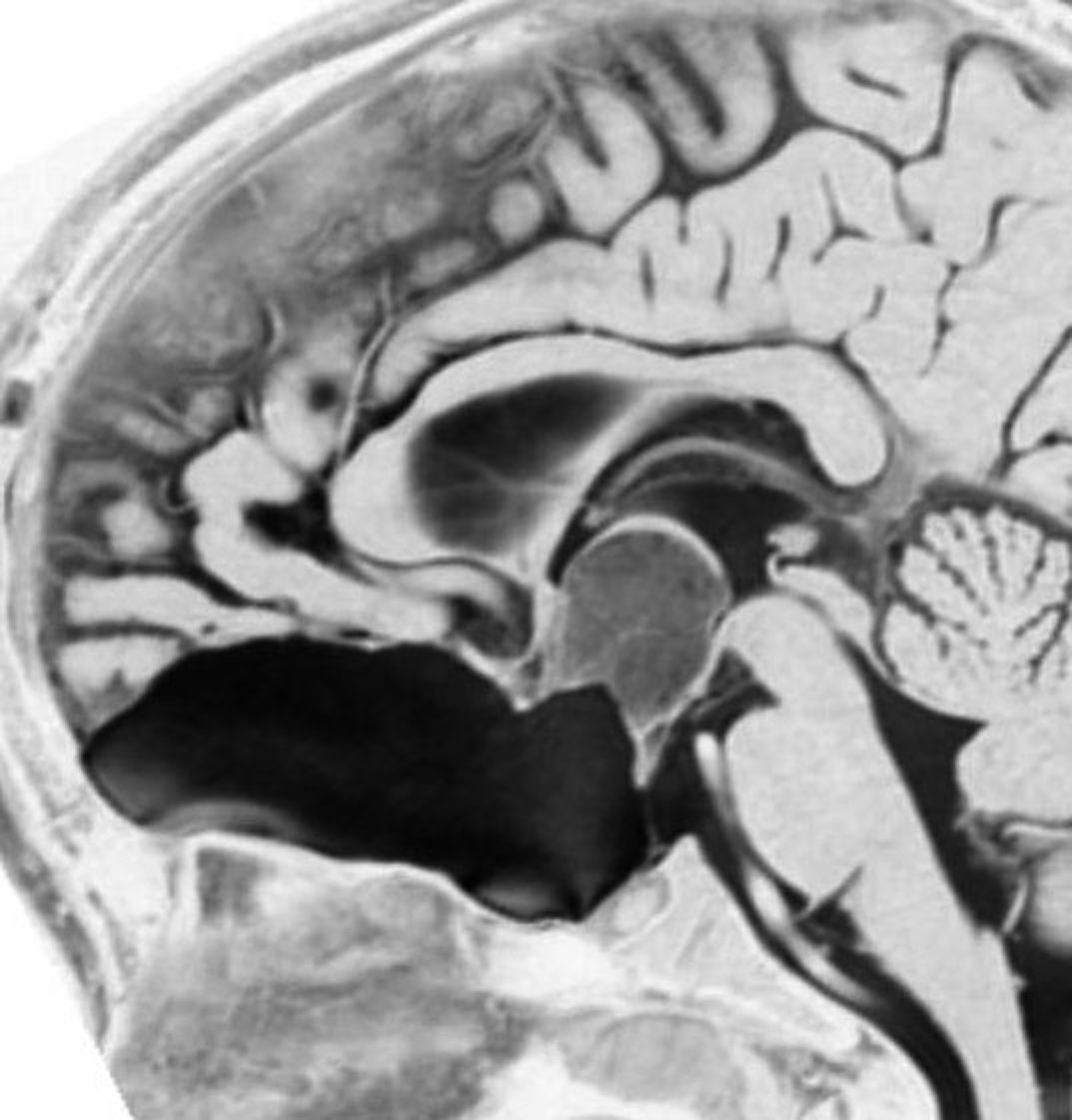 - 大きな腫瘍では,第3脳室上部のモンロー孔の閉塞のために閉塞性水頭症となり嘔吐や意識障害で発症することもあります