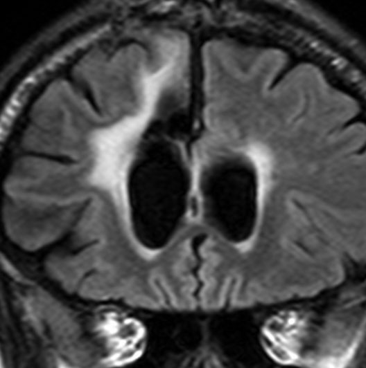 • MRI検査では,脳の萎縮(隙間が多くなる),T2強調画像やフレア画像で白質が高信号になる(白く写る)という所見が見られます