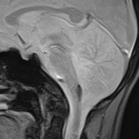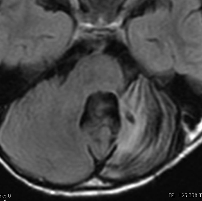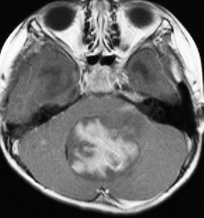 1歳5ヶ月で左小脳半球の髄芽腫になり手術と化学療法して,3歳になってから脳脊髄照射をしました。脳脊髄18グレイ,局所48グレイが入っています。18歳の学生の時のMRIで,左小脳萎縮がありますが普通の生活ができています。