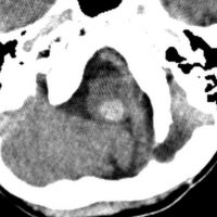 20年以上前のことですが,髄芽腫の1歳6ヶ月の子どもに25グレイの全脳照射をしました。これは15年後のCTです。
