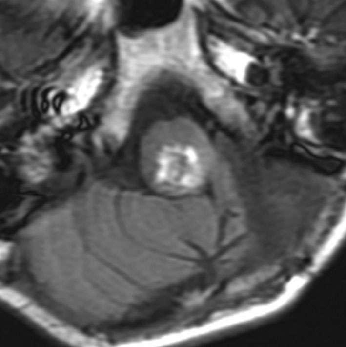髄芽腫治療後17年目,放射線誘発血管腫からの脳幹部出血