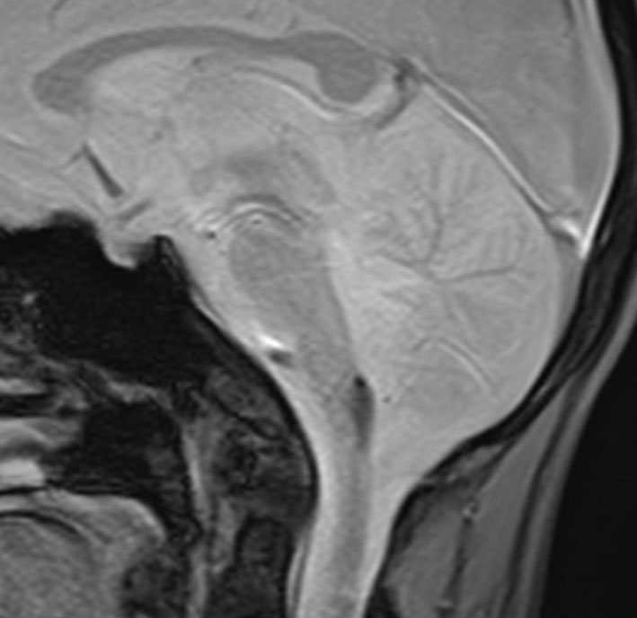 3歳の子どもの髄芽腫の放射線治療後に生じた脳萎縮