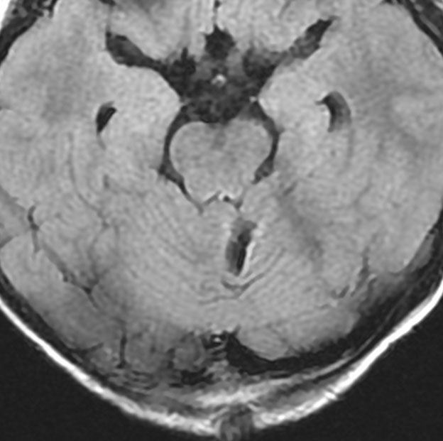 右側は手術直後のFLAIR像です。小児ですから大きなのう胞はすぐに潰れて小脳がもどります。白質損傷もなく腫瘍は摘出できています。
