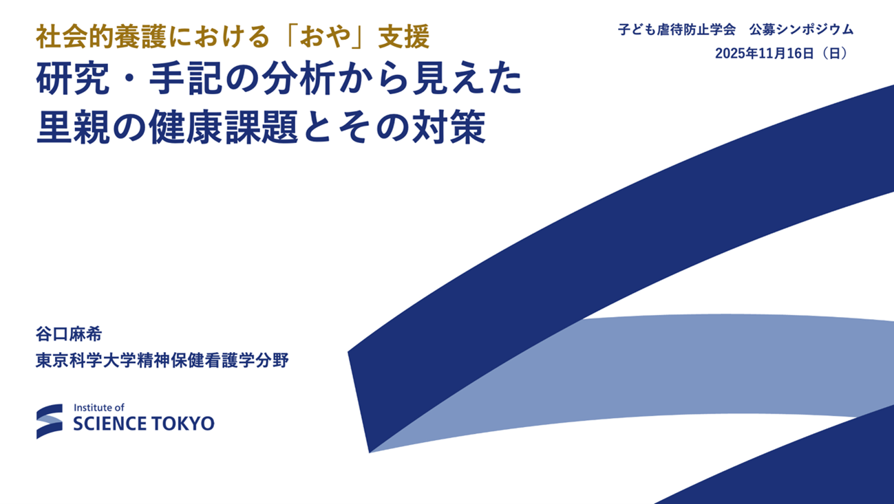 子ども虐待防止学会のシンポジウム「社会的養育における『おや』支援ー実親・養親・里親についての調査研究からー」に登壇しました。(谷口麻希)