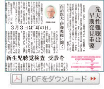 伊藤教授は「何より大切なのが早期発見。早く見つけられれば、音のある世界で周りの人とコミュニケーションが取れる可能性が広がる。難聴と分かっても悲観することなく、前向きに治療や療育に取り組んでほしい」と話した。