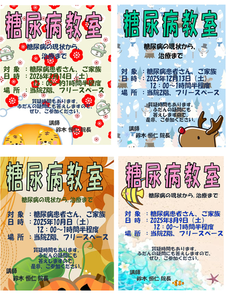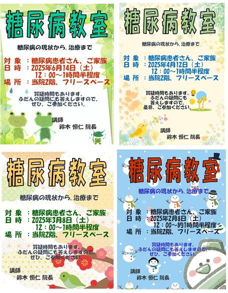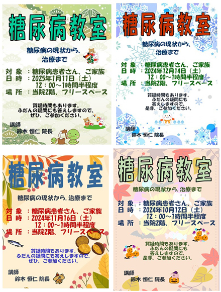 糖尿病教室、メタボリック・シンドローム教室を定期的に行っています。